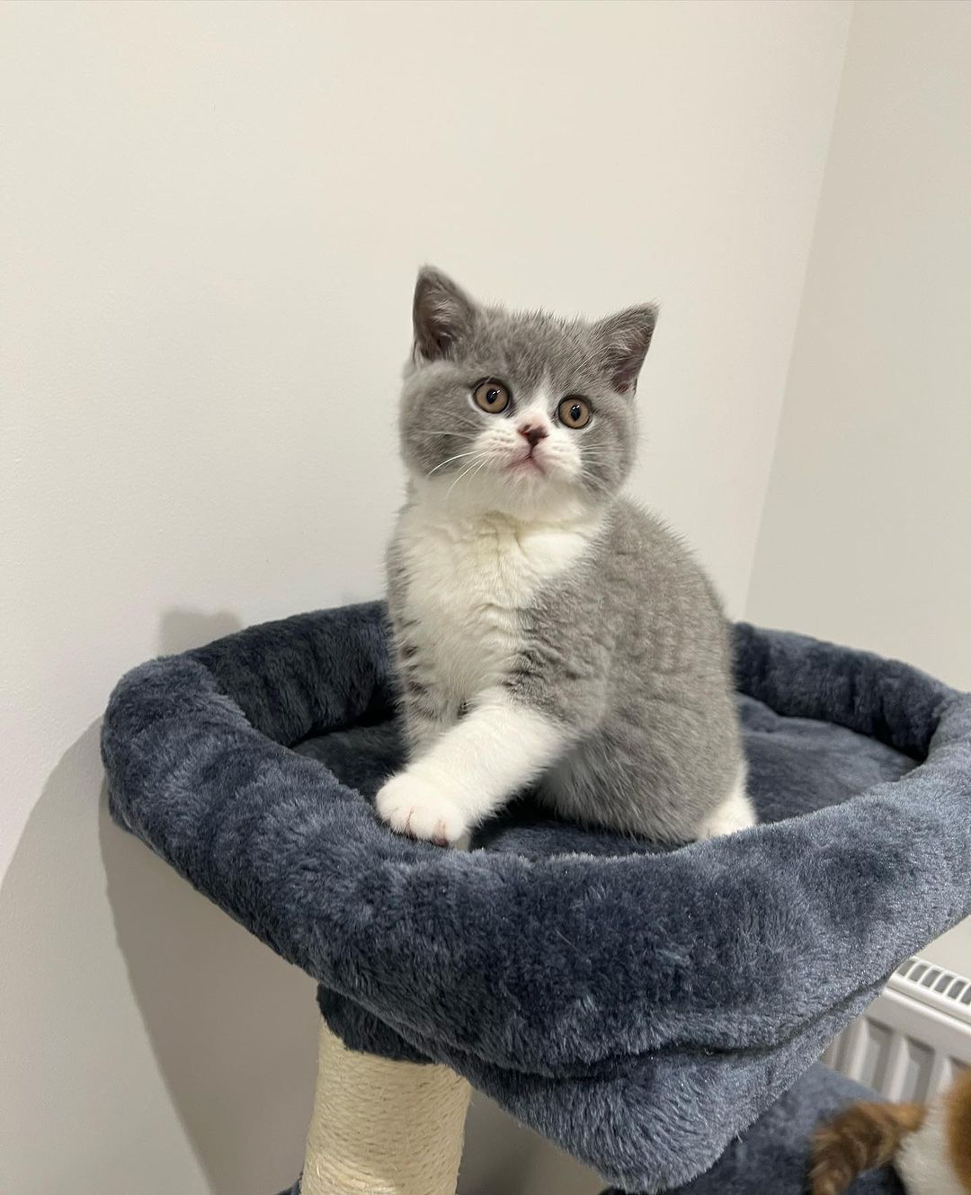 Introducing Xavier, an adorable British male kitten for sale. Xavier has a stunning blue two-tone coat and mesmerizing yellow eyes. He was born on March 1, 2023 and will be ready to leave now. With championship lines and show performance, Xavier is sure to win your heart.